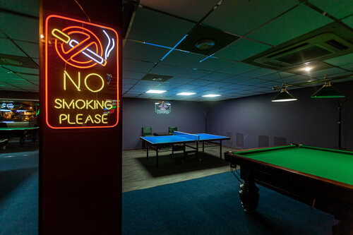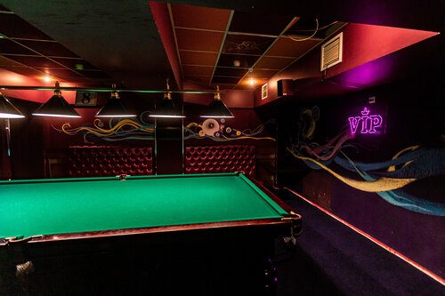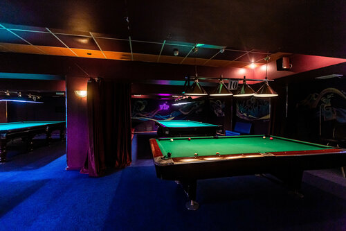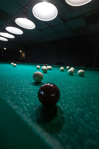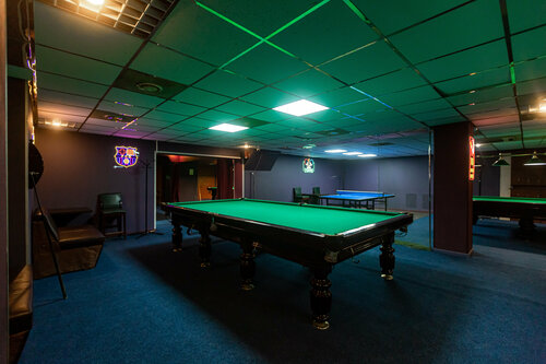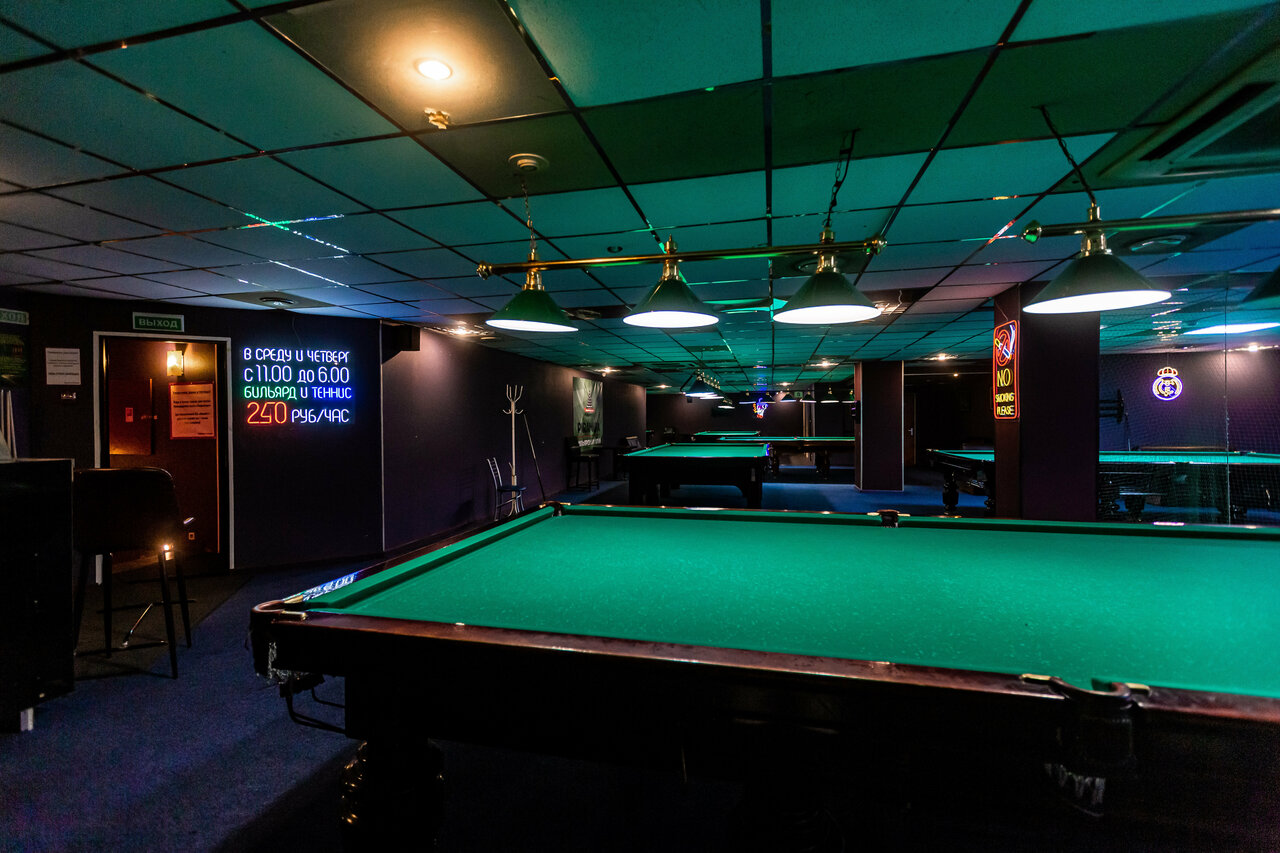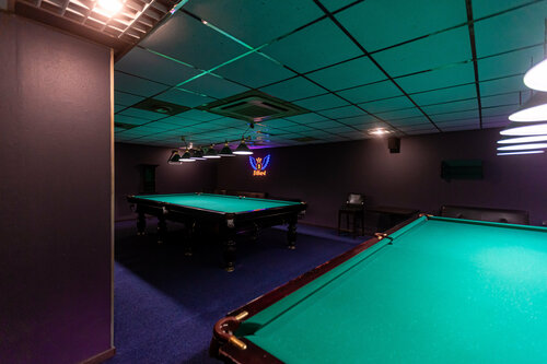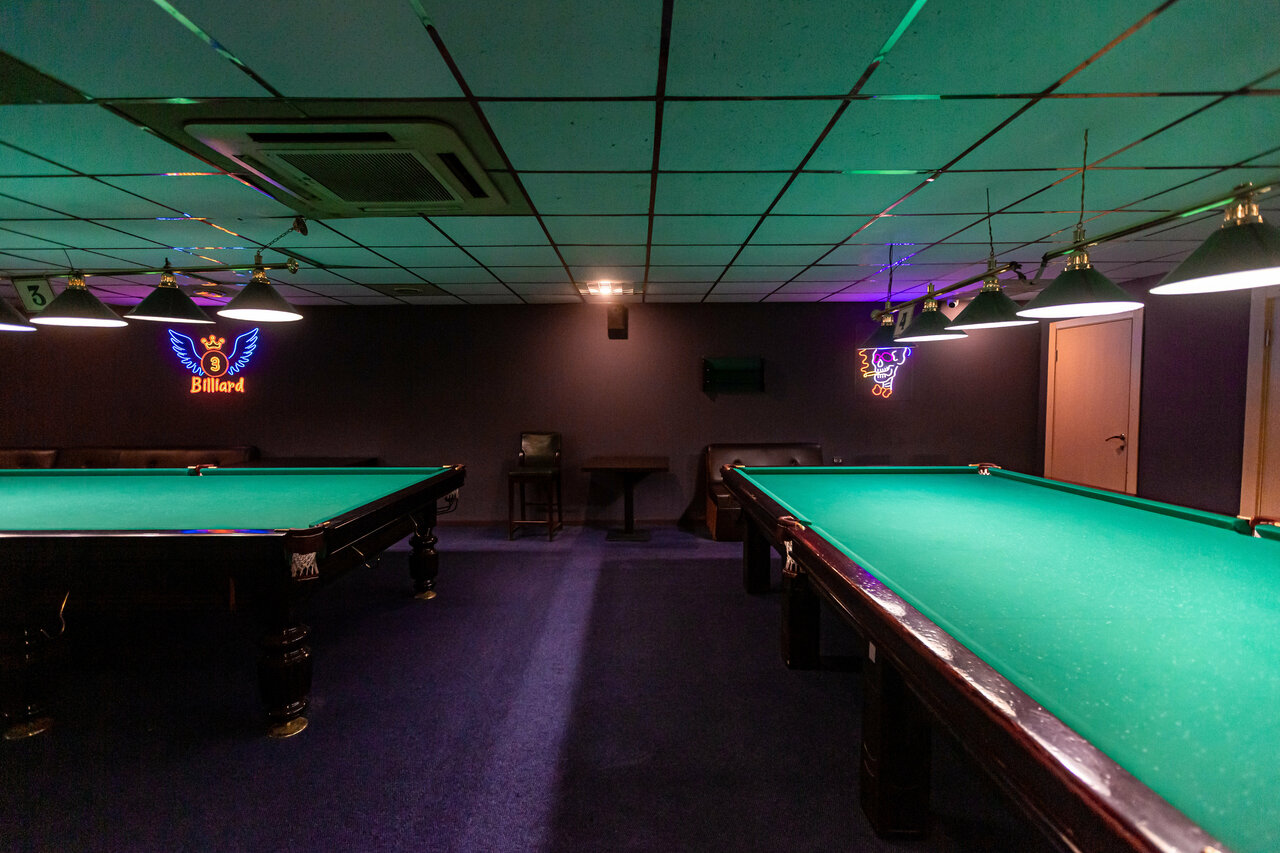 👌🏼К услугам посетителей — 11 столов (12 футов) русского бильярда и 5 столов (9 футов) для игры в американский пул, где вы сможете насладиться любимой игрой в специально созданной для максимального удовольствия обстановке.