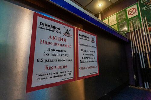 Бильярдный клуб “PIRAMIDA” — это широкий спектр развлечений, высокий уровень обслуживания, уютный и очень просторный интерьер.